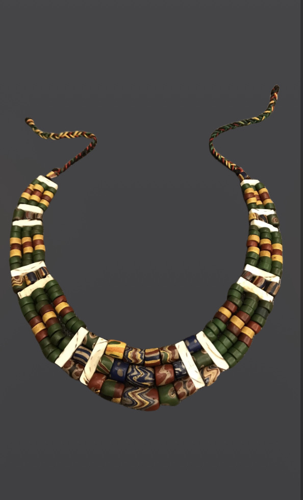 層疊的珠鏈宛如排灣族歷史的篇章,象徵尊榮、守護與祖靈的祝福。豐富的色彩與紋樣交織,展現強烈的文化自信與視覺張力,是重大節慶或展演場合的理想配件。可依需求客製,訂製期約20天。